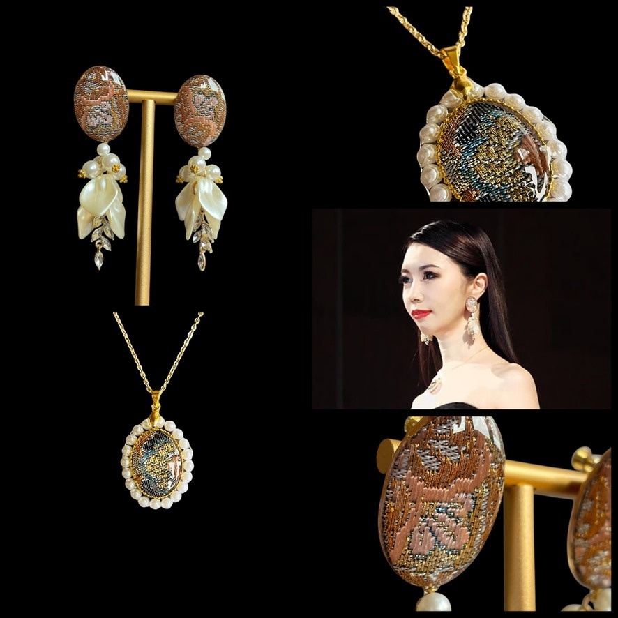 「着物の帯を宝石のように加工されて作られている唯一無二のそのデザインは、気品高く美しく思わず見惚れてしまいました!身に付けるだけで成熟した大人の女性としてのオーラと自信を与えてくれてランウェイも堂々と歩くことが出来ました!存在感があり高貴な雰囲気なので特別な日に是非身に付けたいです! また、姫という名前の通り可愛らしさと華やかさもあるデザインなので、普段の日常にも彩りを与えてくれるそんな力のあるアクセサリーだと思いました!!」