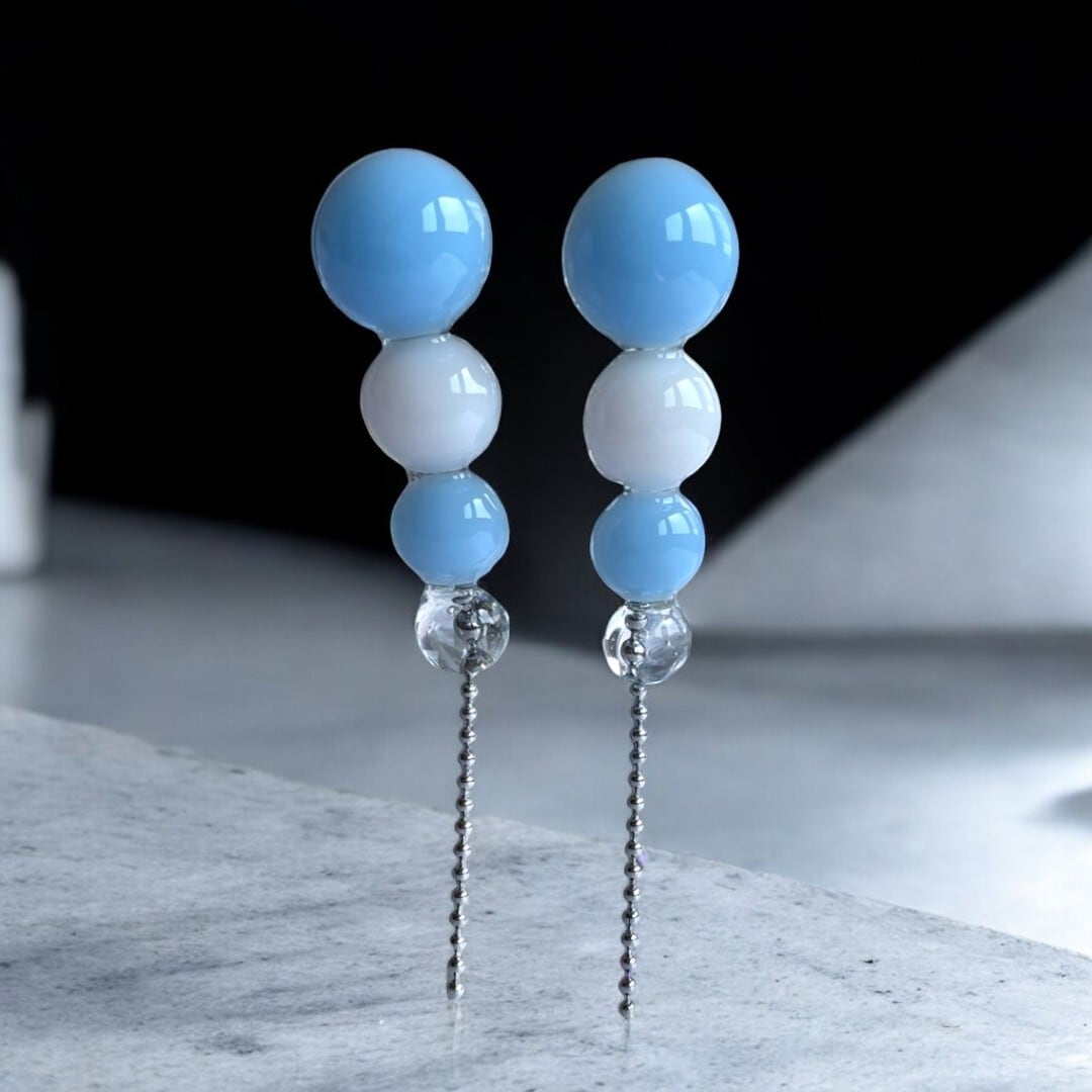 素材:レジン樹脂(水色・白)、シルバーチェーン、サージカルステンレス金具