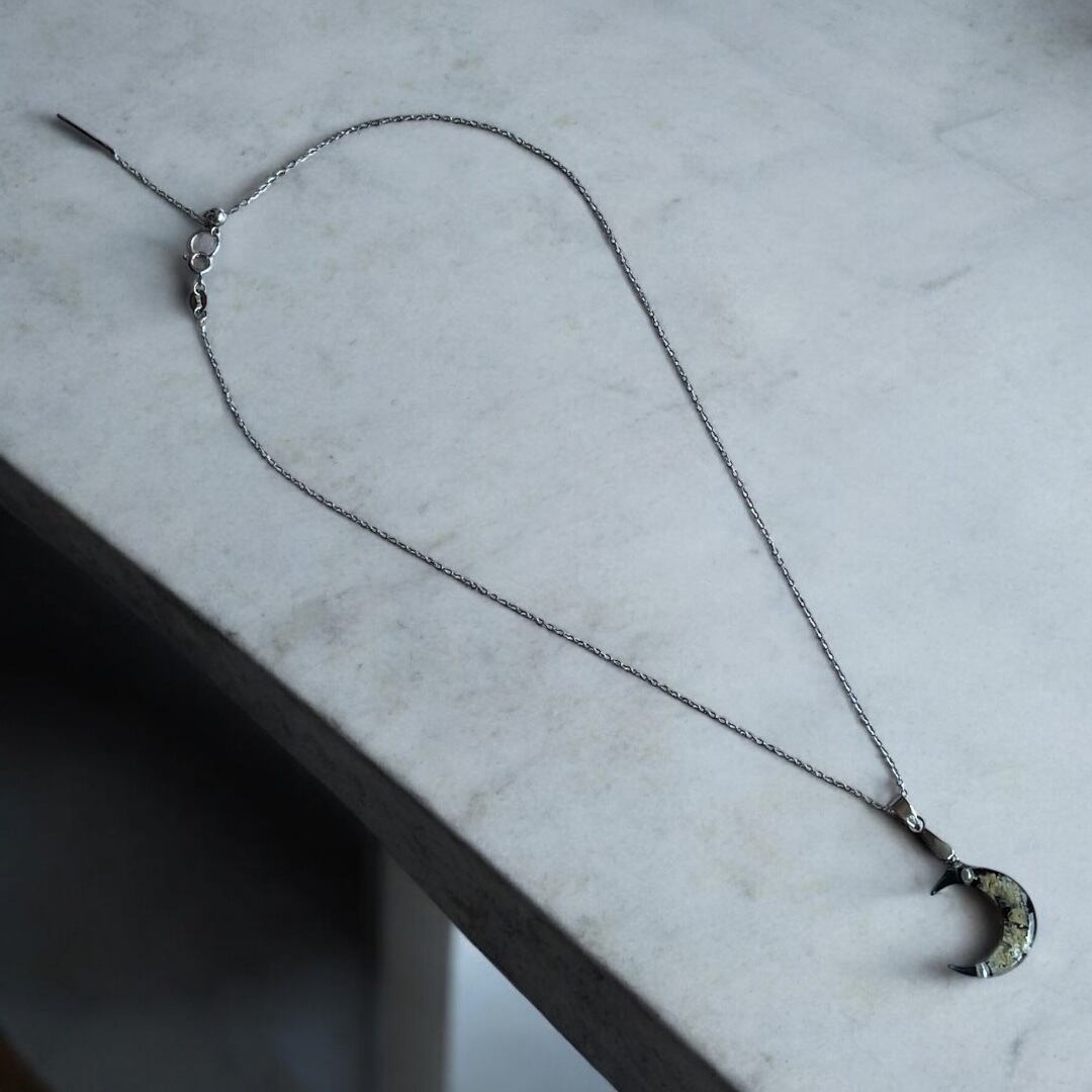 夜空にそっと浮かぶ三日月を閉じ込めたような、「月夜のしずく」ネックレス。