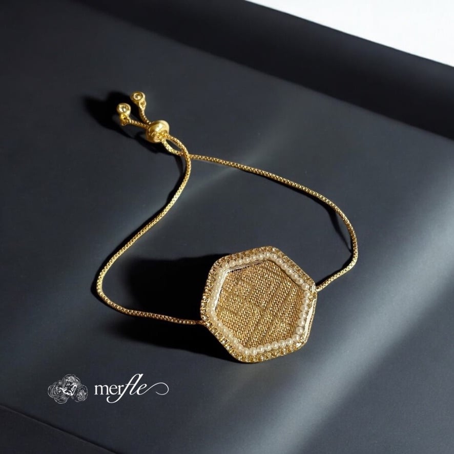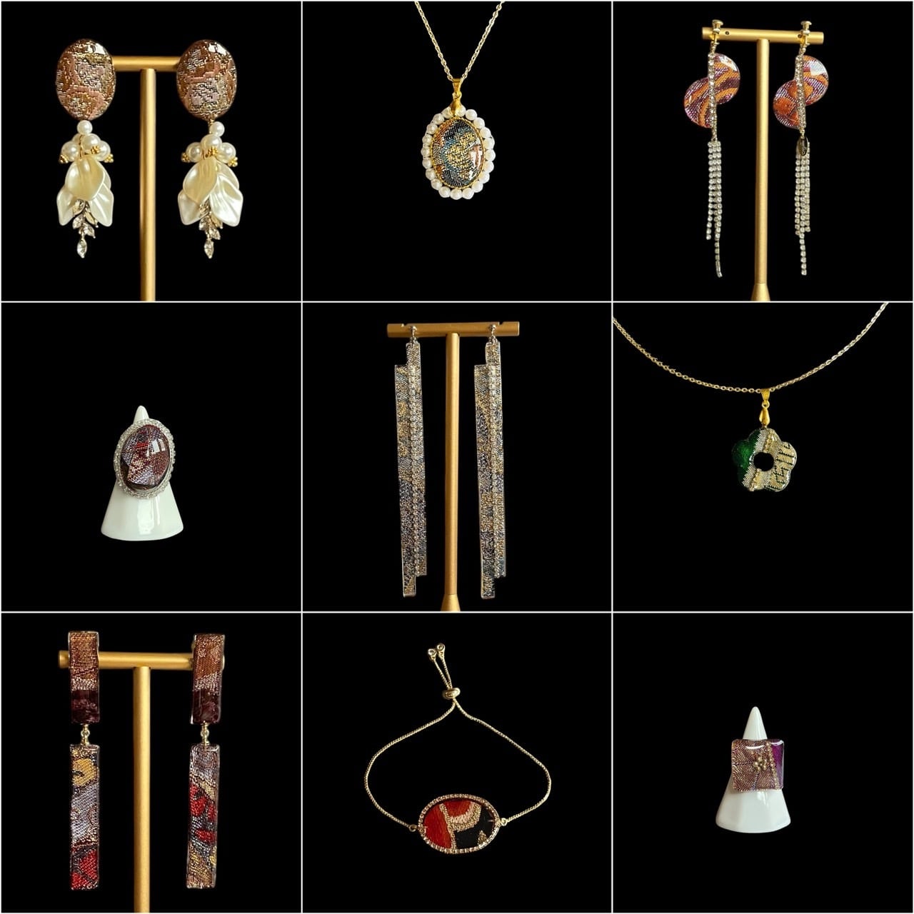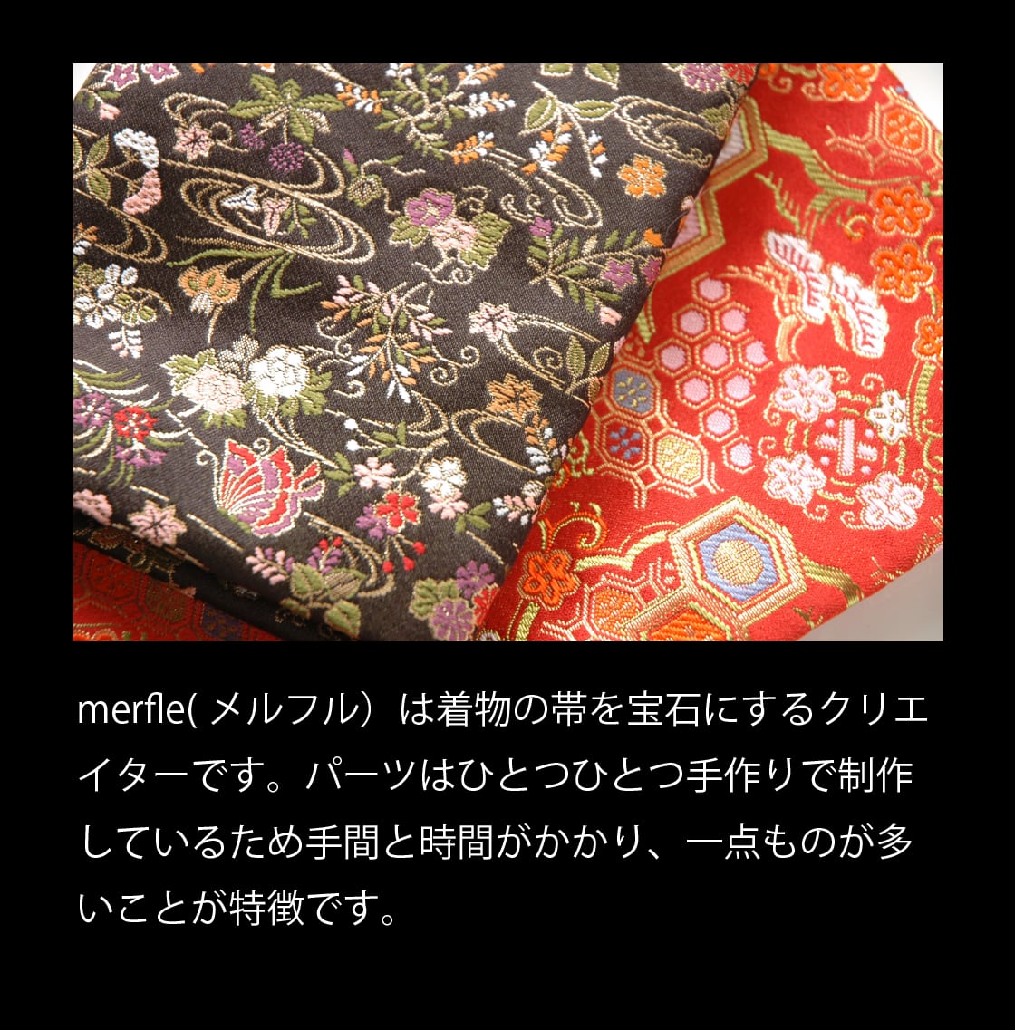 着物の帯を加工して仕上げたパーツはまるで宝石のようです。