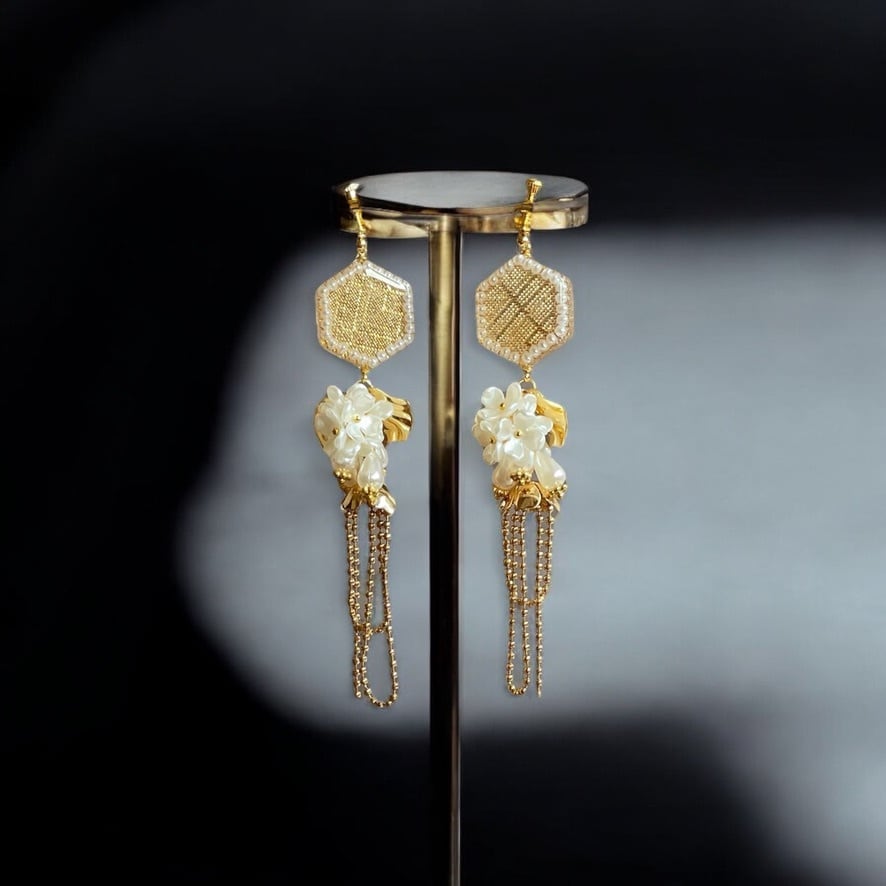 一点物です。イヤリングかピアスをお選び下さい。発送についてはクライアントから返還されてからになります。11月末発送予定です。金具や本体のメンテナンス、洗浄、コーティングを施した後、お箱にお入れしてご郵送致します。