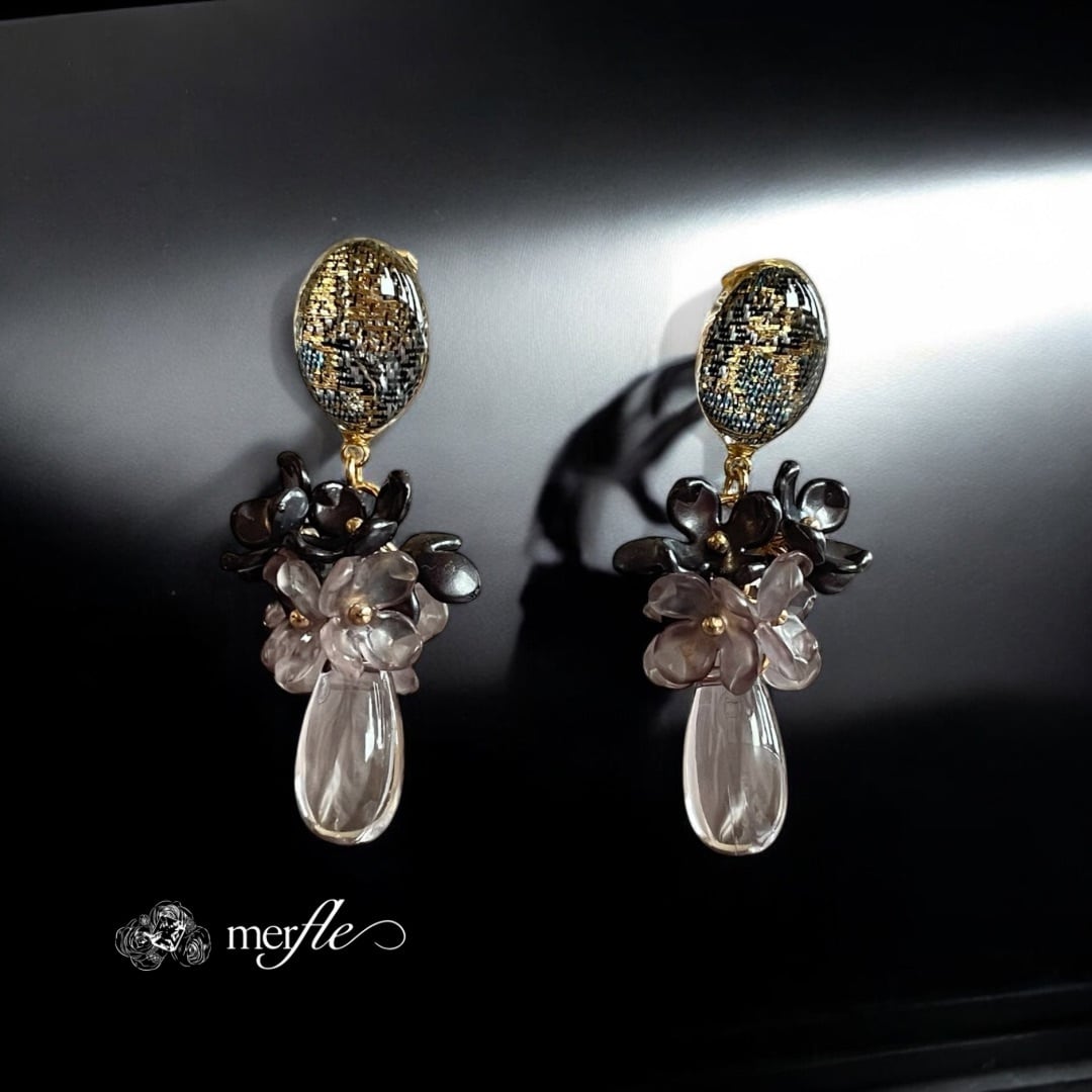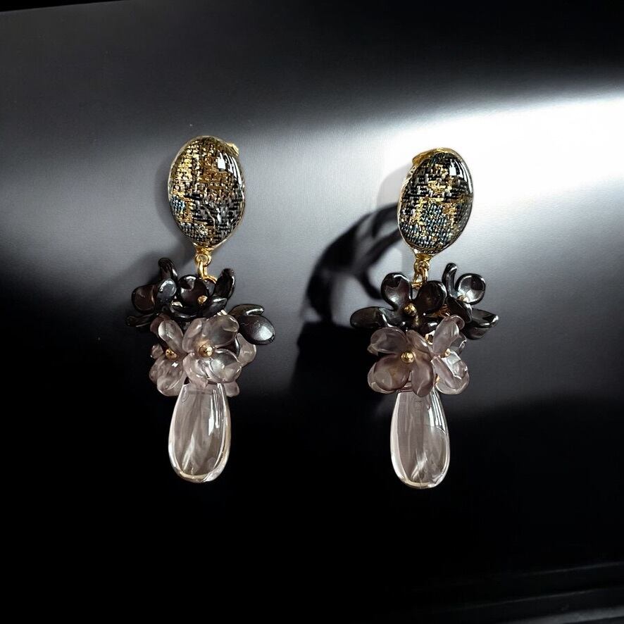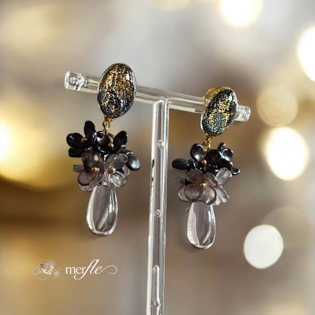 東京ファッションフェスタ2024出展作品です。着物の帯を加工したオリジナルパーツのイヤリングです。