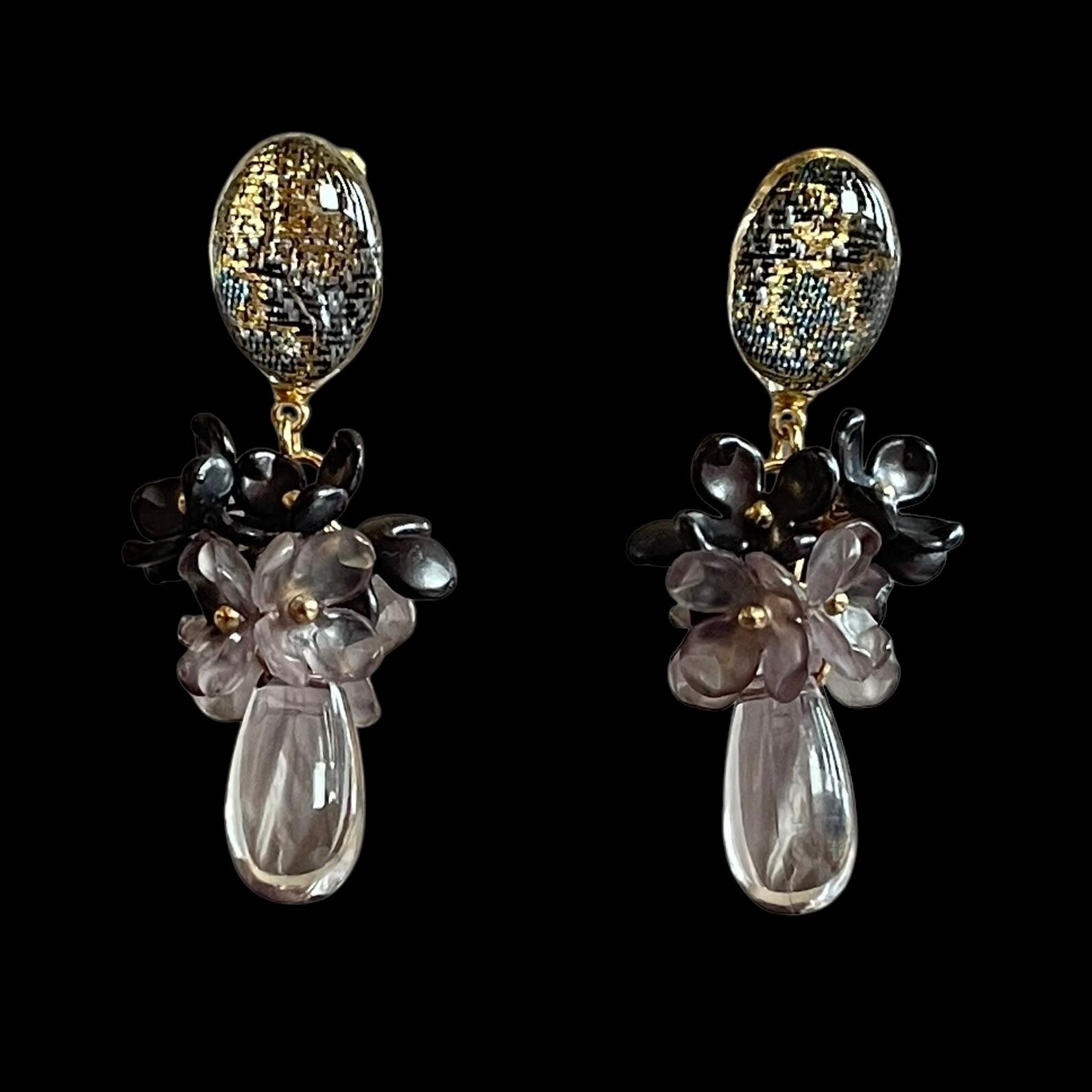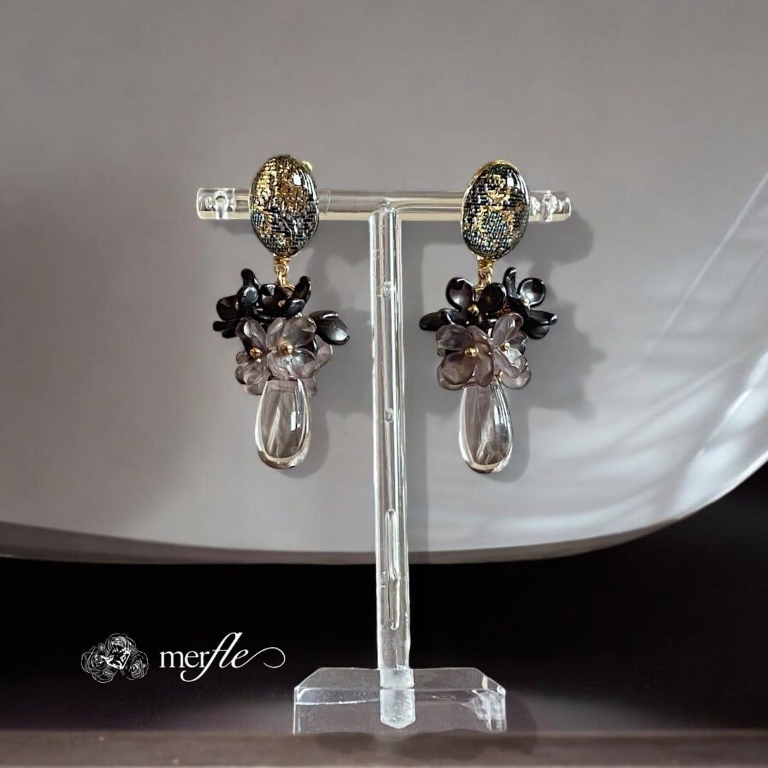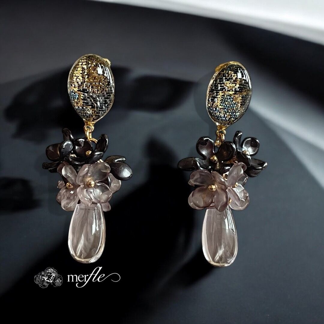 東京ファッションフェスタ2024出展作品です。着物の帯を加工したオリジナルパーツのイヤリングです。