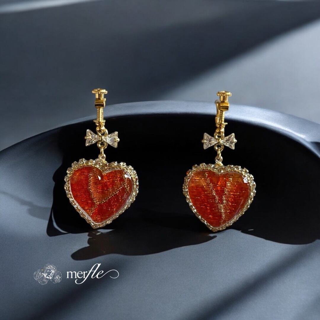 東京ファッションフェスタ2024出展作品です。着物の帯を加工したオリジナルパーツのアクセサリーです。