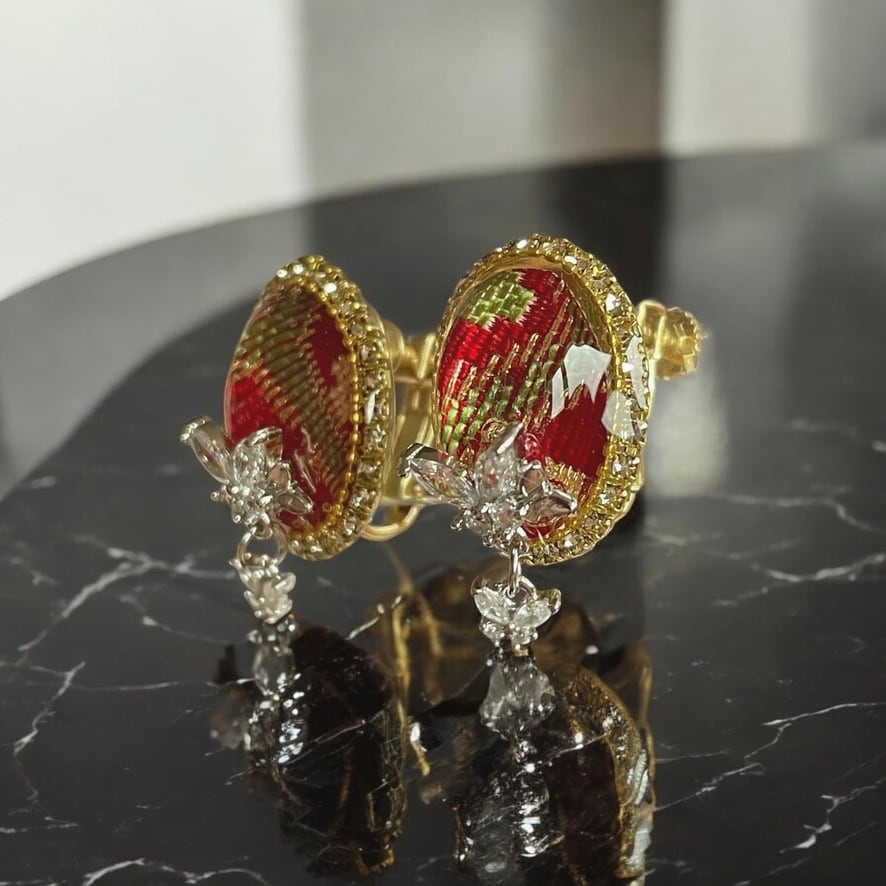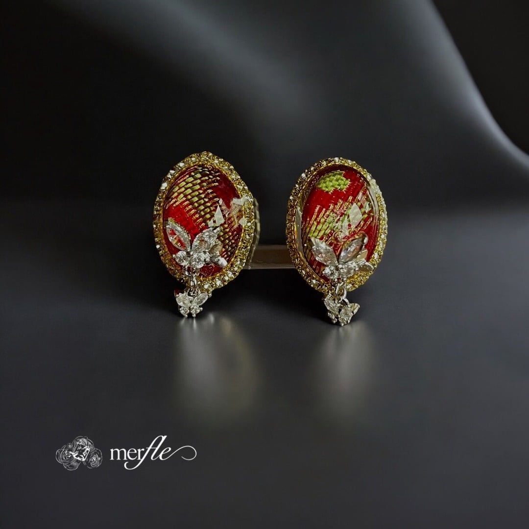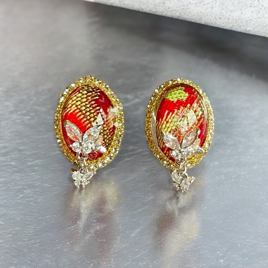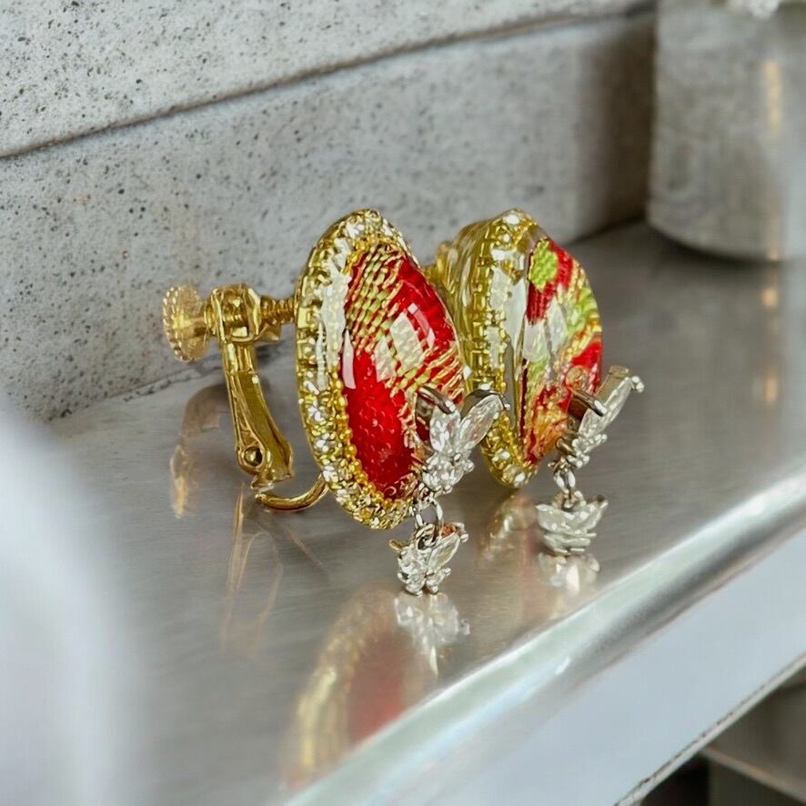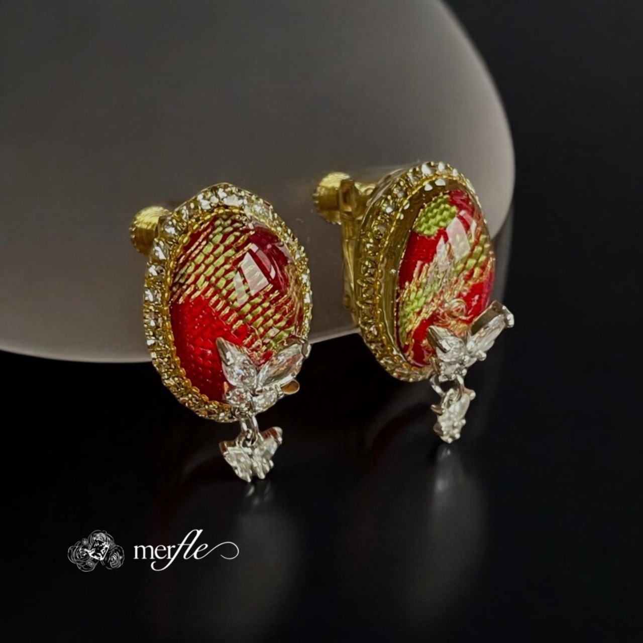 第2回 JAPAN FASHION TOUR 2024 -EUREKA collection-【名古屋】出展作品です。着物の帯を加工したオリジナルパーツのアクセサリーです。